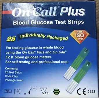 Que Thử Đường Huyết OnCall Plus dùng cho 2 dòng máy là Oncall Plus và Oncall EZII. Quy cách : 25 que / hộp và 50 que/ hộp( hộp 2 lọ mỗi lọ 25 que) Bảo quản : nhiệt độ từ 2 - 30°C. Tránh ánh nắng mặt trời. Nhà sản xuất : Acon Laboratories., USA